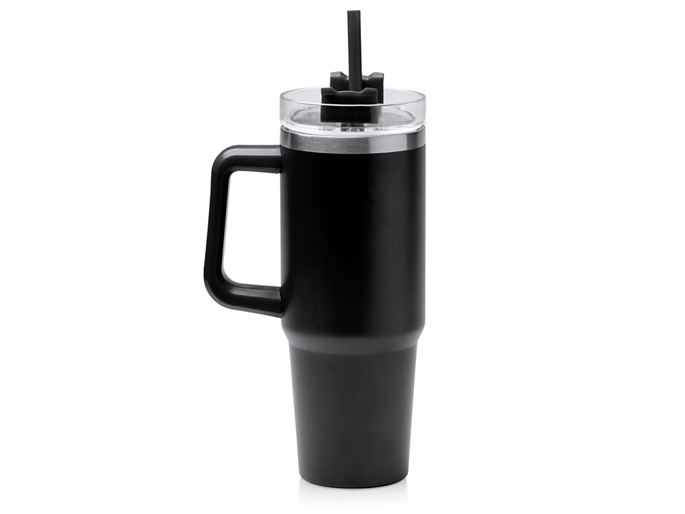 Двухстеночная термокружка из переработанной нержавеющей стали 304. Крышка с трубочкой и винтовой системой закрытия. Объём: 850 мл. Поставляется в дизайнерской коробке.