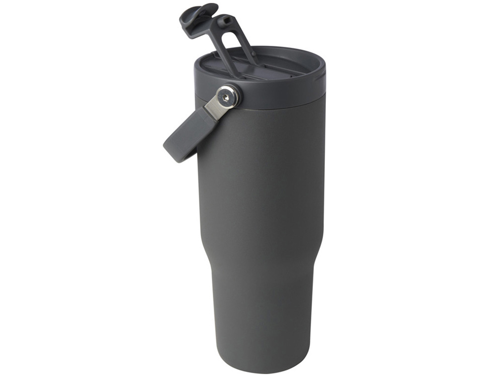 Кружка Bronx объемом 900 мл изготовлена из нержавеющей стали, сертифицированной по стандарту RCS, и имеет двустенную вакуумную конструкцию с медной изоляцией. Крышка имеет двойную функцию: складная трубочка для удобства питья и откидной верх с удобной складной ручкой для удобства переноски. Подходит для большинства автомобильных подстаканников. Поставляется в подарочной коробке из переработанного картона. RCS certified recycled stainless steel. Упаковка FSC Mix Credit P5.1 CU-COC-877277.