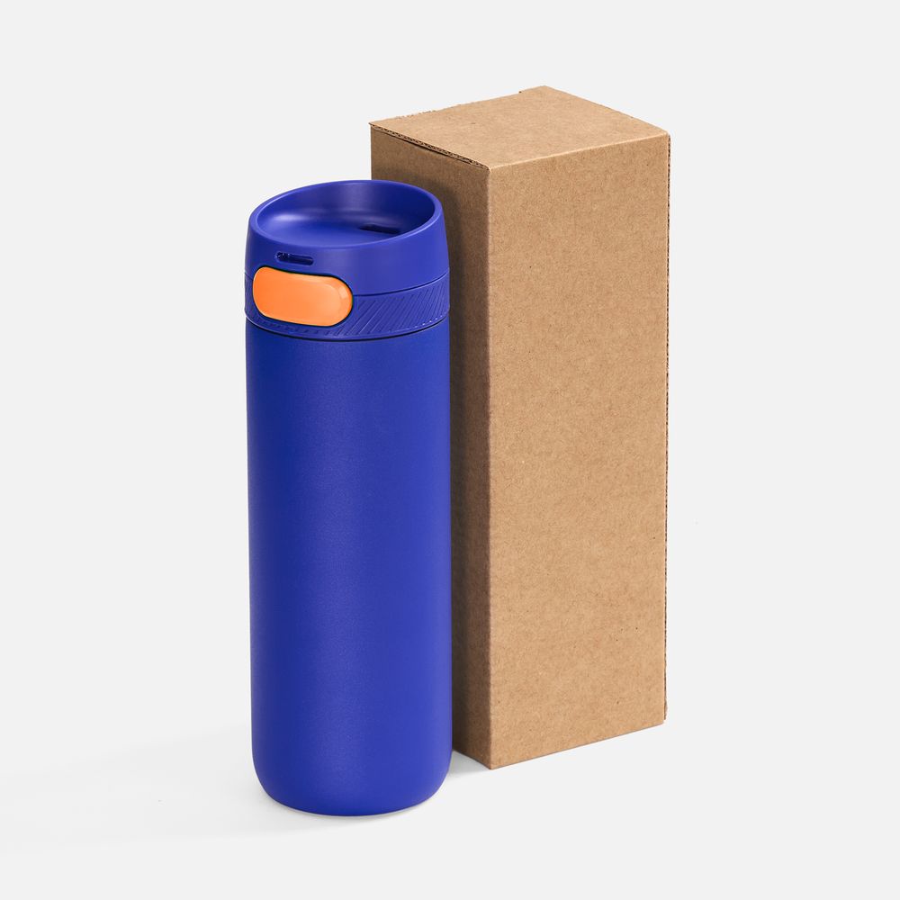 Термостакан X1 с цветной кнопкой, синий с оранжевым
