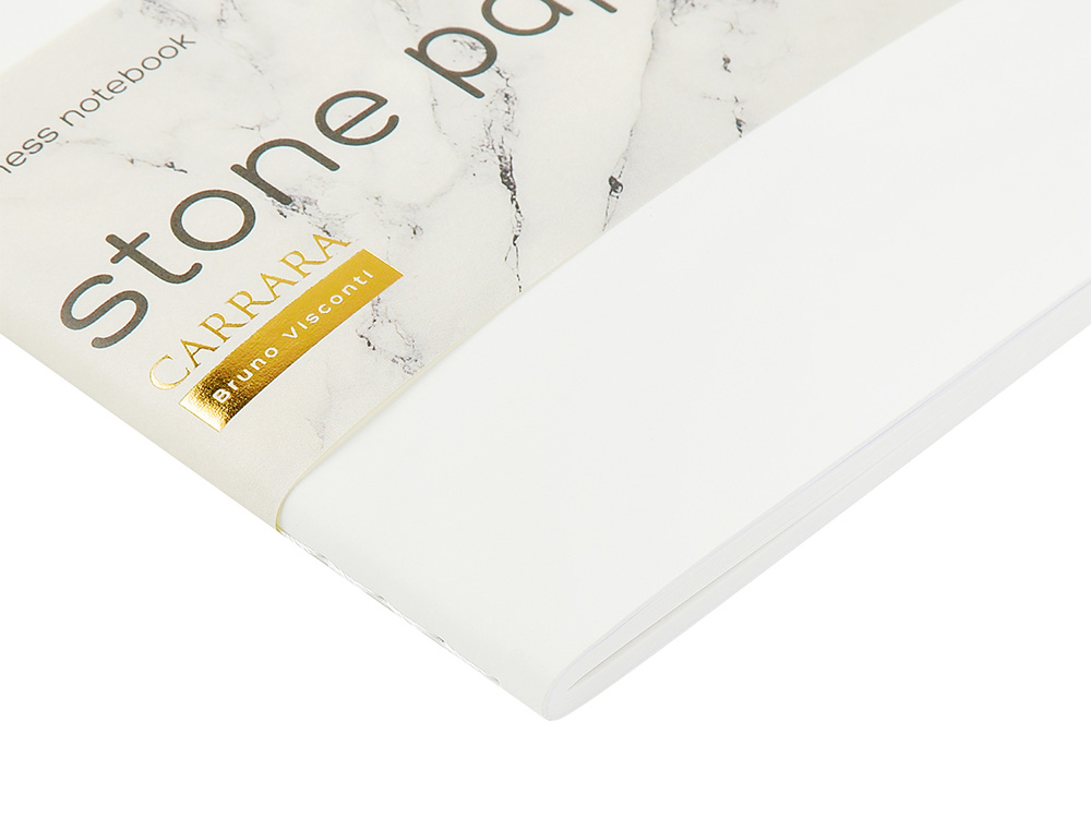 Тетрадь серии Carrara ТМ Bruno Visconti формата А5 - обладательница гибкой обложки из искусственной кожи с приятным тактильным ощущением благодаря покрытию Soft Touch. Плотная нить не только надежно скрепляет обложку и блок, но и является дополнительным декоративным элементом, украшающим тетрадь. Блок изготовлен из каменной бумаги плотностью 144 г/кв.м, которая отличается особой гладкостью и повышенной прочностью. Она не боится воды, достаточно просто протереть сухой салфеткой.