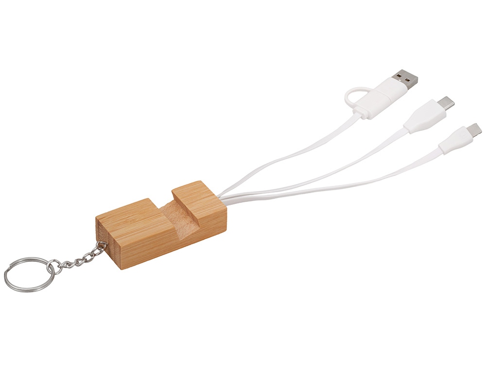 Универсальный кабель с подставкой 4-в-1 Unicable — стильное и практичное решение для современного пользователя. Этот компактный аксессуар станет незаменимым спутником в вашем кармане, сумке или на рабочем столе. Поставляется в фирменной коробке bamboo collection. Оснащён четырьмя разъёмами: • Входными разъемами USB-A и USB-C — для подключения к компьютеру, блоку питания или зарядному устройству. • USB-C — совместим с современными смартфонами, планшетами и ноутбуками. • Lightning — для некоторых устройств Apple (iPhone, iPad). Экологичный и стильный корпус из дерева Корпус кабеля выполнен из натурального бамбука — экологически чистого и прочного материала. Деревянная подставка не только защищает кабель от перегибов, но и служит удобной опорой для телефона при видеозвонках, прослушивании музыки или просмотре видео. Ключница с кольцом — всегда под рукой Специальное металлическое кольцо позволяет легко прикрепить Unicable к ключам, рюкзаку или сумке. Благодаря этому вы никогда не потеряете свой кабель — он будет всегда рядом, когда понадобится.
