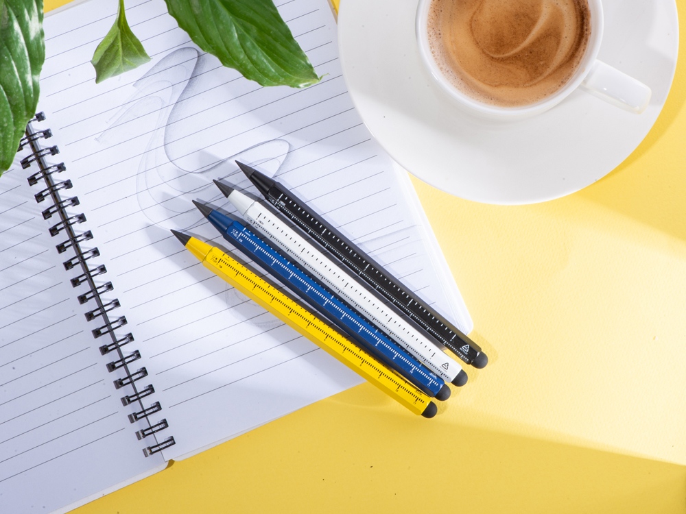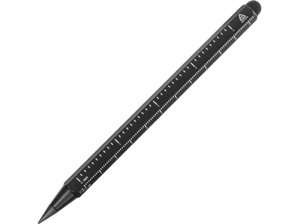 Карандаш изготовлен из переработанного алюминия. В отличие от обычных карандашей его не нужно точить, и он не пачкает руки. Наличие на корпусе двух линеек, в сантиметрах и в дюймах, позволит при необходимости моментально измерить что-либо или перевести одни единицы в другие. С обратной стороны карандаша есть стилус, которым удобно что-то делать на телефоне или планшете. • Долго служит • Не нужно точить • Наличие шкал на линейке в сантиметрах и дюймах • Стилус на обратном конце