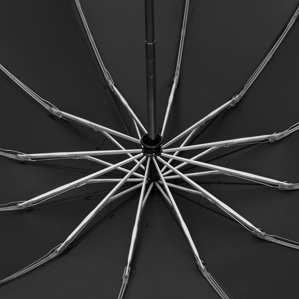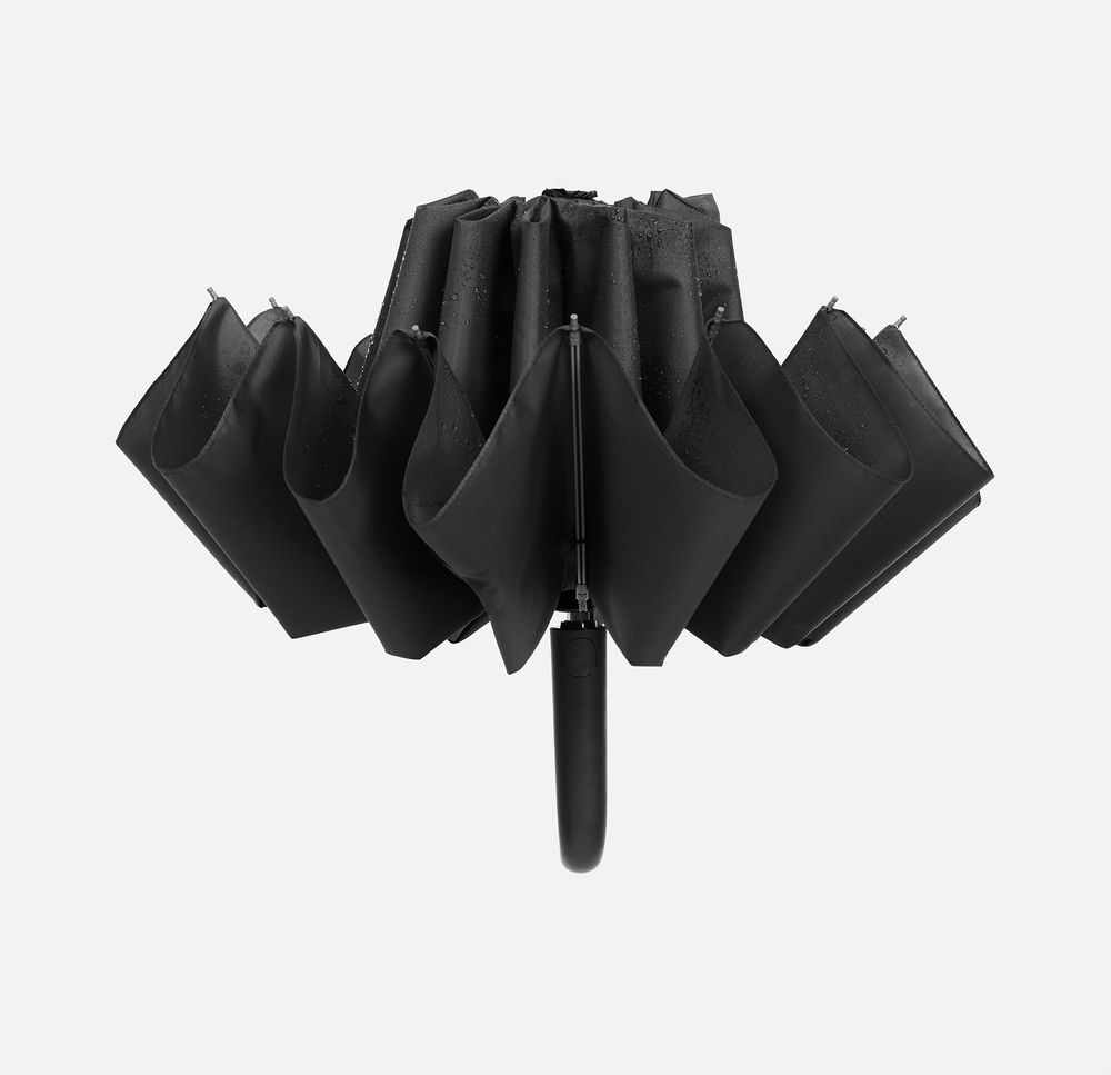 Зонт-автомат обратного сложения с 12 усиленными спицами, легким алюминиевым штоком и ручкой-карабином.