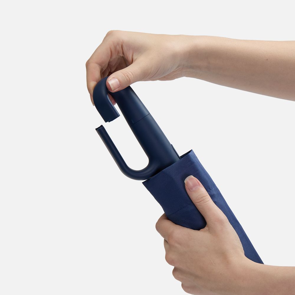 Зонт складной Skymate с УФ-защитой и ручкой-карабином, темно-синий купить оптом и в розницу с нанесением логотипа в Новосибирске